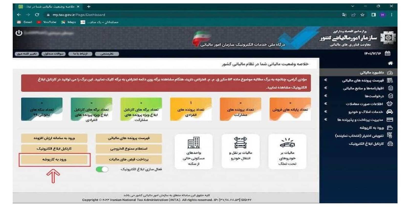۱- ورود به درگاه ملی خدمات مالیاتی به نشانی WWW.my.tax.gov.ir