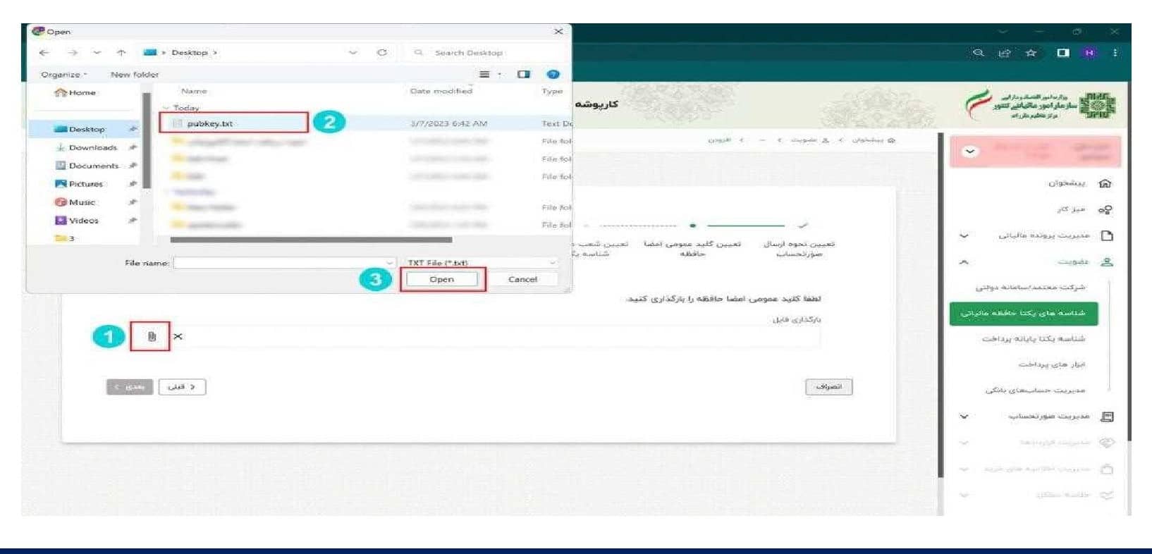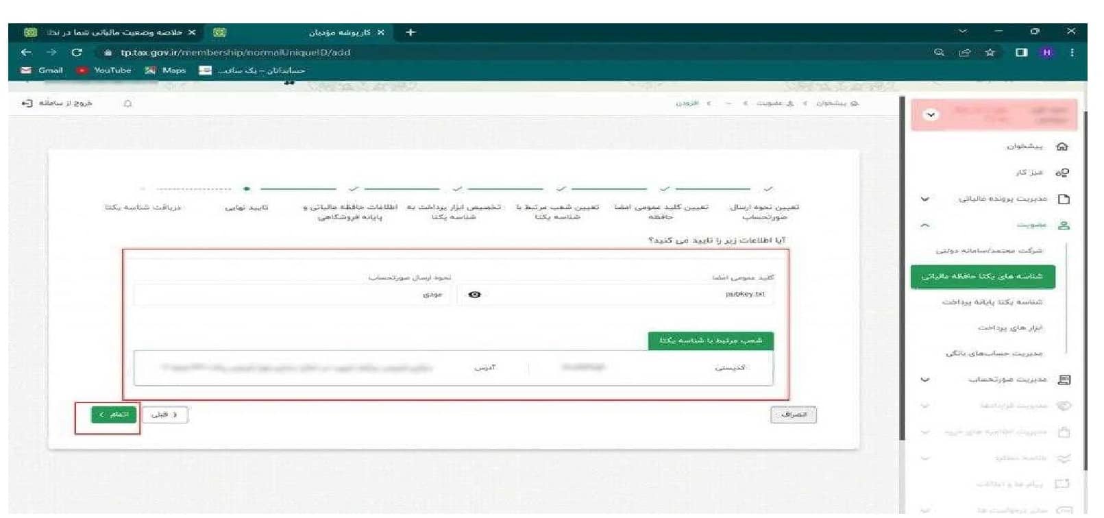 ۲۰) شما کلید عمومی را دریافت کردید و می توانید آن را در پوشه خود بارگذاری نمایید و شناسه یکتای حافظه مالیاتی خود را دریافت کنید .