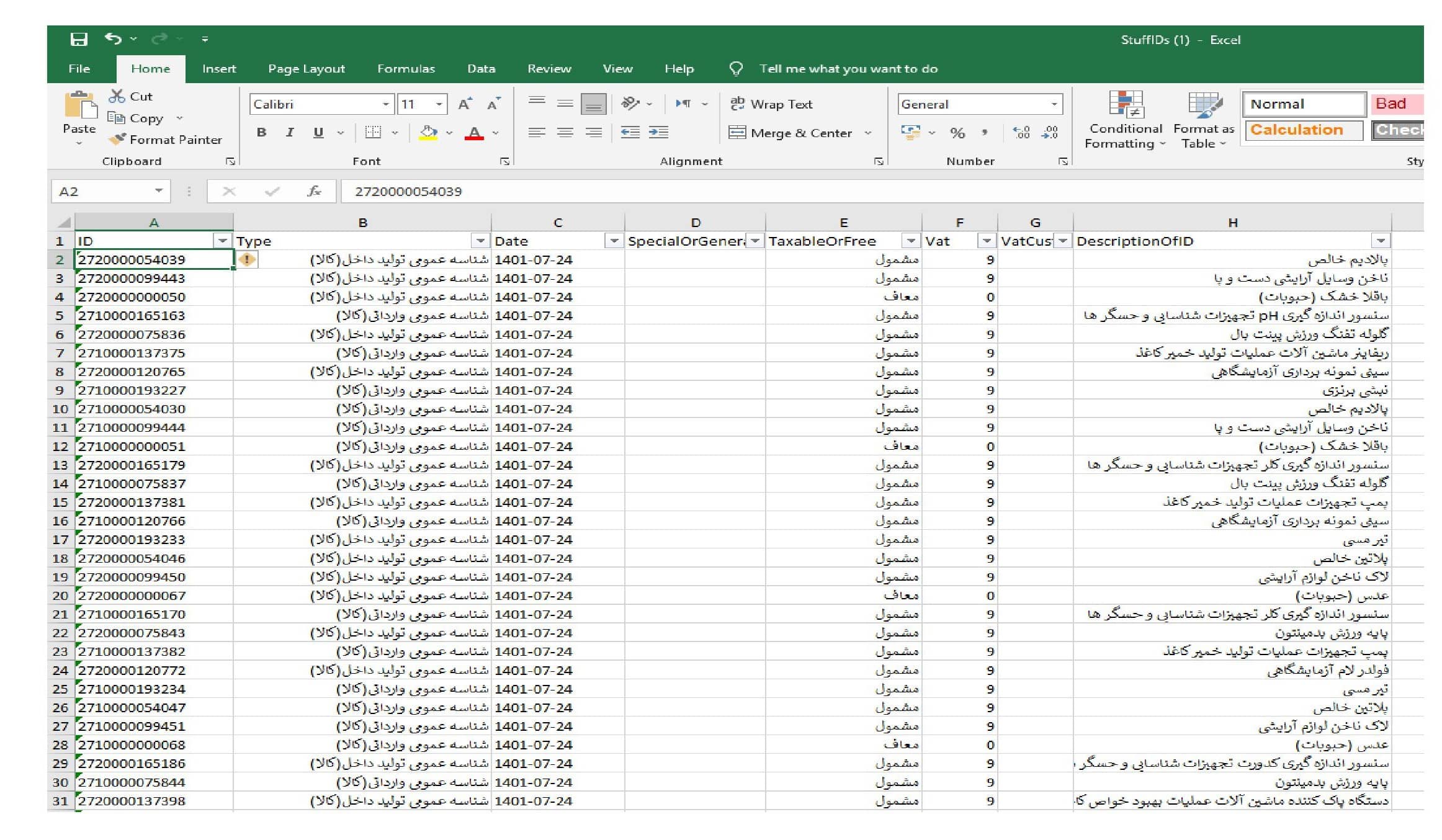 دریافت شناسه کالا و خدمات